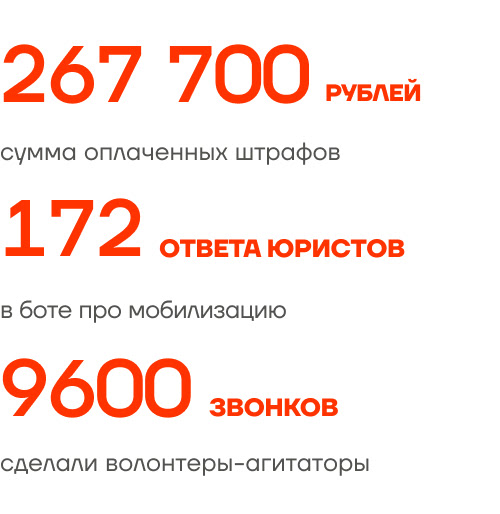15 октября, в день, когда Навальный находился в тюрьме уже 1000 дней, наши сторонники по всему миру выходили на акции поддержки Алексея. А 30 октября, вместе с «Мемориалом» и «Медиазоной», мы провели День политического заключенного. Создали бот, через который можно выбрать политзэка, написать ему письмо и поддержать финансово, а также написали подробную инструкцию, как вступить в переписку.