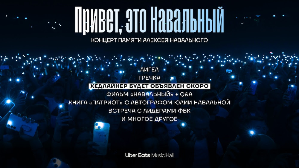 В мае мы анонсировали второй фестиваль памяти Алексея Навального — «Привет, это Навальный». Он пройдет 28 июня в Берлине, на концерте выступят АИГЕЛ и Гречка, а также секретный хедлайнер, которого мы скоро объявим.