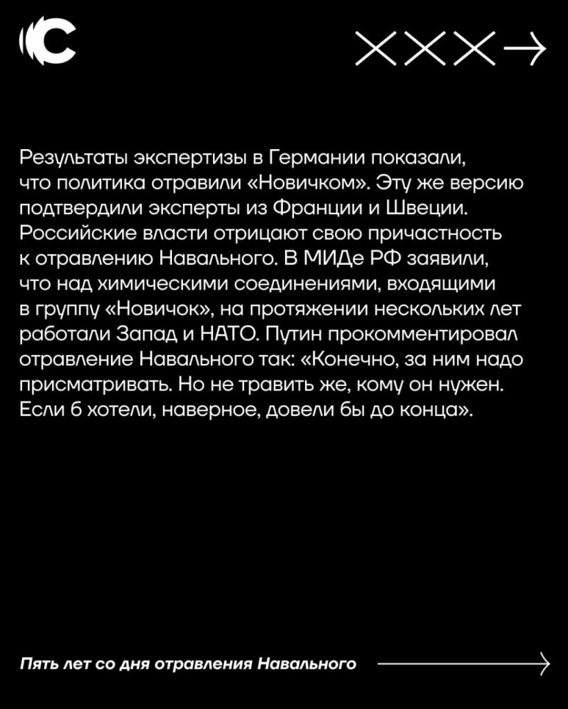 В сентябре Юлия Навальная рассказала о последних днях Алексея и представила новые свидетельства его отравления в колонии ИК-3. У нас есть показания сотрудников колонии и подтверждение независимых лабораторий: Алексей был убит. Мы требуем публикации всех результатов исследований.